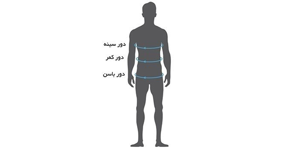 | سایز | دور قفسه سینه - سانتیمتر | دور باسن - سانتیمتر | دور کمر - سانتیمتر |